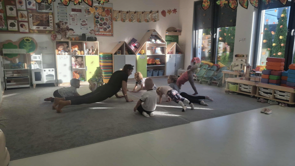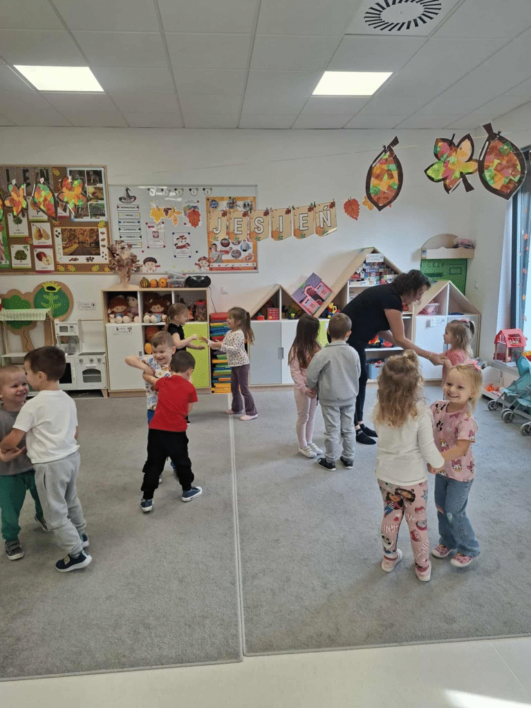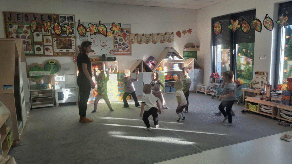 W Gminnym Przedszkolu w Wierzbinku „Żabka” w ramach projektu „Utworzenie i utrzymanie nowych miejsc wychowania przedszkolnego oraz zwiększenie oferty edukacyjnej Gminnego Przedszkola w Wierzbinku „Żabka”” finansowanego z Programu Funduszy Europejskich dla Wielkopolski 2021-2027, współfinansowanego ze środków Europejskiego Funduszu Społecznego Plus od lutego 2025 roku odbywają się następujące zajęcia dodatkowe: zajęcia rytmiczno-ruchowe, zajęcia z gimnastyki korekcyjnej oraz z logorytmiki. Zajęcia te rozbudzają u dzieci zamiłowanie do rytmicznego ruchu przy akompaniamencie muzyki lub śpiewu piosenki, rozwinąć pamięć muzyczną i ruchową oraz umiejętność uczenia się melodii, zapamiętywania rytmów . Zajęcia ruchowe, pozwalają poprzez gimnastykę, zabawę i grę na kształtowanie odruchu prawidłowej postawy ciała oraz napięcia mięśniowego, kształtowanie koordynacji ruchowej oraz wyczucia własnego ciała. W trakcie zabaw ruchowych oraz ćwiczeń korekcyjnych dzieci poznają własne ciało, odkrywają różnice pomiędzy postawą prawidłową a nieprawidłową. Zajęcia prowadzone są w formie zabawy, której atrakcyjność rozwija zainteresowania dzieci oraz podwyższa motywację, rozwijanie koncentracji uwagi i pamięć.